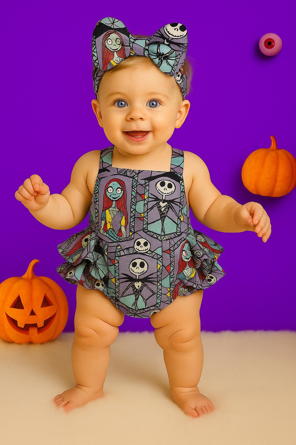Custom made rompers inspired by Jack & Sally from Nightmare before Xmas Romper Is made of soft stretchy fabric. At Bearsentials we thrive on making your visions to reality if you have something in mind you’d love us to make please choose CUSTOM and put the character or theme in the comments