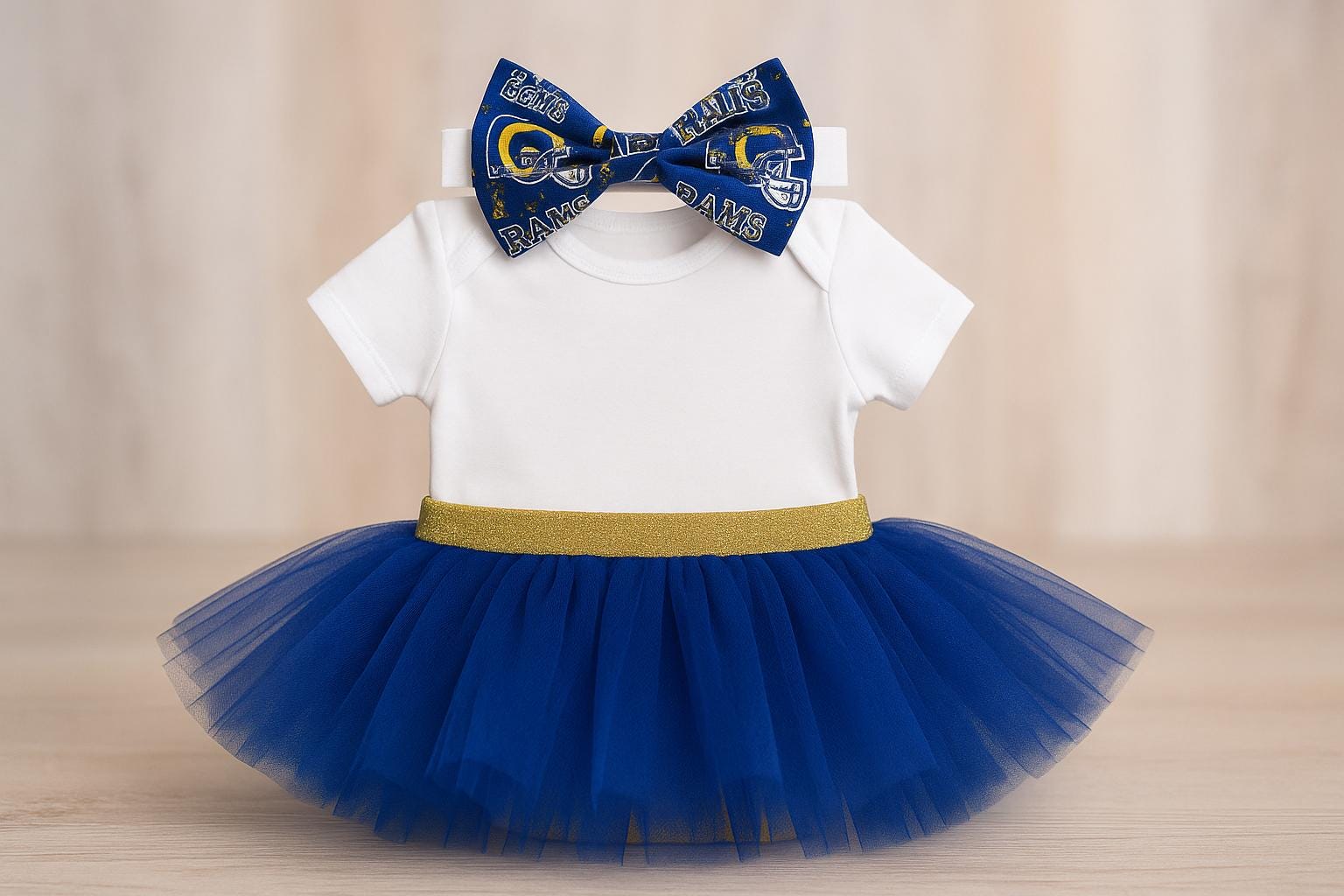 Rams Baby Outfit: Football Fan Gear Set with Hair Bow
