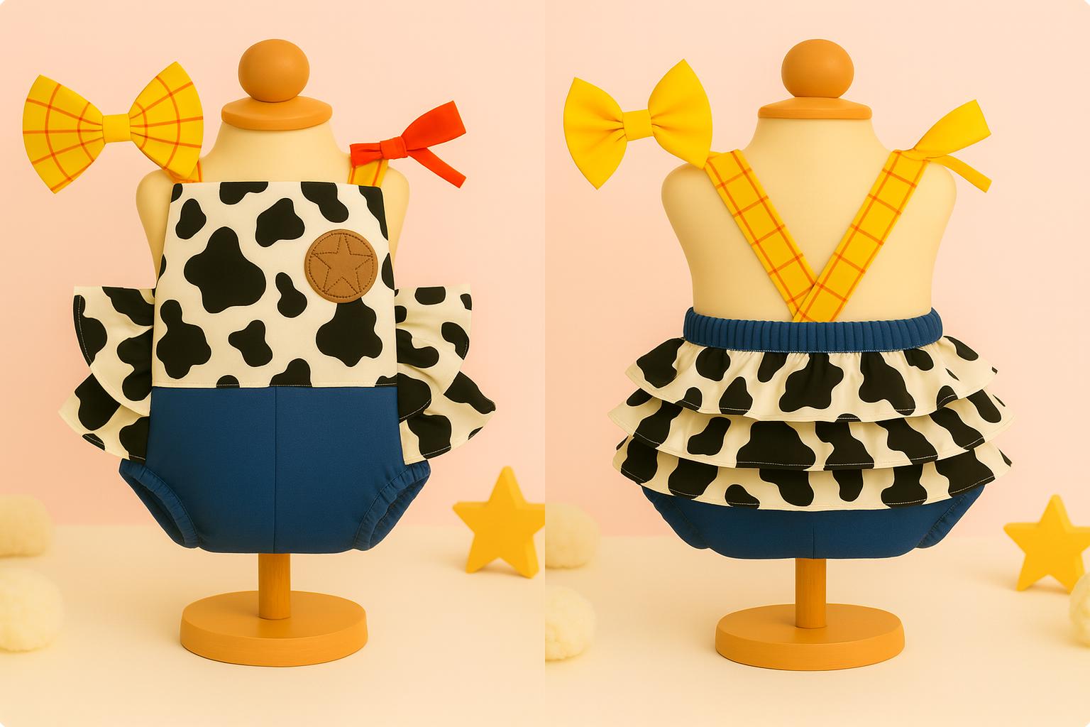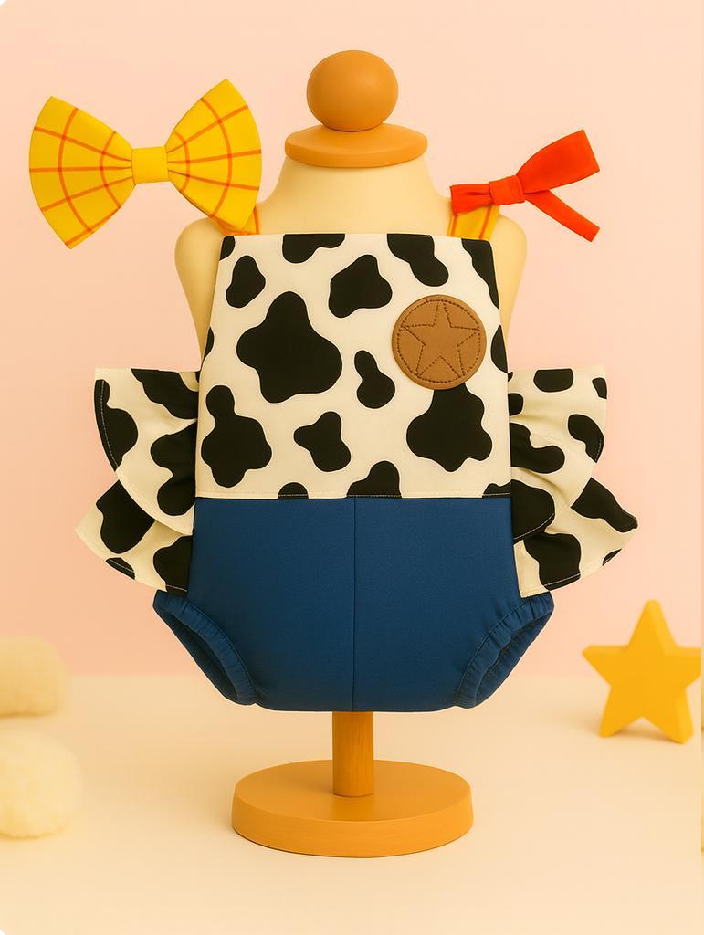 ✨ Make playtime and photo moments magical with our Inspired Character Baby Rompers! Perfect for birthdays, park days, or everyday dress-up fun, each romper is designed with soft fabrics and adorable themed details. 🎉 Available Designs (Code Names) “Space Ranger” – Inspired by a brave hero with purple + green space suit details “Little Green Friend” – Three-eyed cutie with bright blue and green colors “Cowboy Sheriff” – Western romper with cow print, star badge, and golden plaid accents “Cowgirl Wrangler” – Cow print ruffles with sunny yellow straps and bows “Little Shepherdess” – Pastel romper with pink polka dots, ruffles, and bow charm 👶 Features Soft, breathable cotton blend Snap bottoms for easy diaper changes Elastic legs + waist for comfort and movement Handmade with love for unique, special outfits 🎁 Perfect For First birthdays, smash cake photos, and milestones Park trips & themed family vacations Halloween costumes and dress-up Unique baby shower gifts for Disney-loving families ✨ Each romper is carefully designed to be comfortable, adorable, and picture-perfect for your little one. Pair with bows or accessories for the full look!